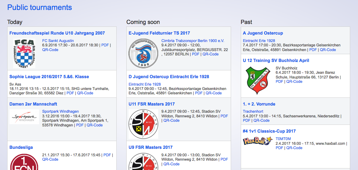 Now, your tournament will be displayed on our homepage. On the day it takes place, it will definitely be presented there. On the days before and after that, it will only possibly be presented there.